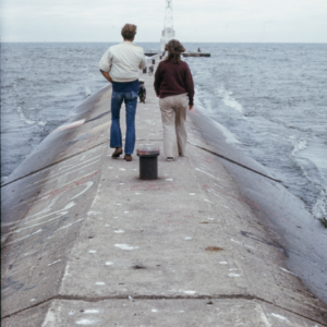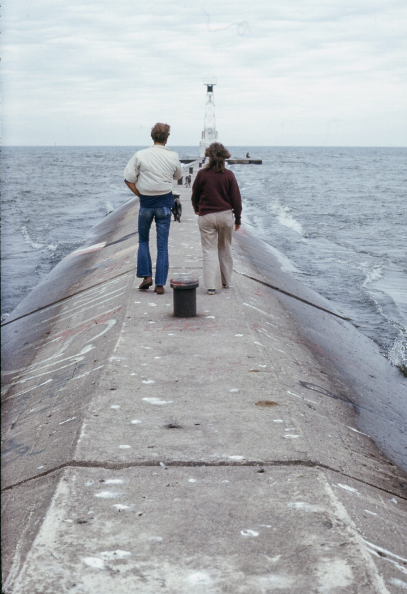 Long Walkon a long pier out to the navigation light in Holland State Park, Michigan