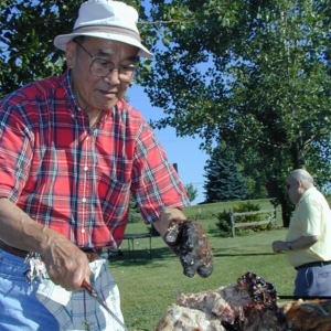 Gukhe is always so comfortable beside the grill, Jul 1999