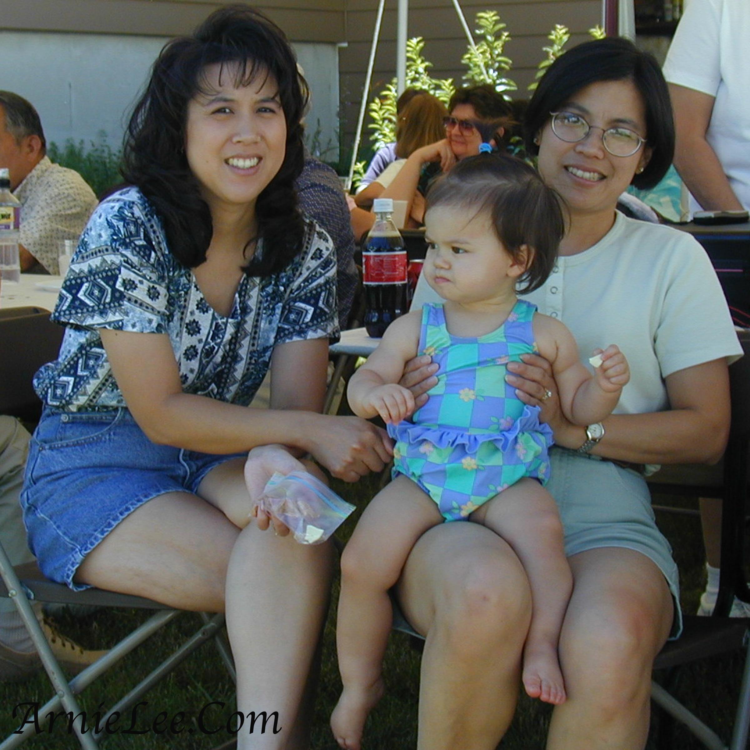 Pam, Kyrstin & Pattynder the awning, Jul 1999