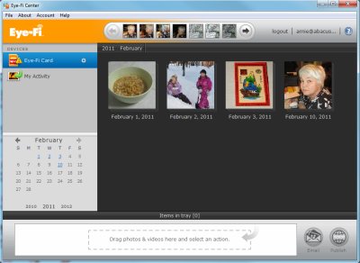 Note: I also installed the Eye-Fi Center software on an iMac. Annoyingly, the Eye-Fi Center software refused to accept my WEP code a dozen or so times while connecting to my network. Although the software told me that my WEP code was invalid, it actually accepted the code despite the erroneous message. Later, I contacted Eye-Fi technical support to learn if this is a known problem but have yet to receive an answer. Except for this installation problem, the software worked flawlessly and I was able to transfer and forward images through my iMac.