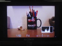 viewfinder displaying histogram at bottom right