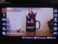 The A55 has an excellent LCD. It’s a high resolution display with 920K pixels. The LCD itself has sensors which automatically adjust the display on the LCD based on ambient light levels. The specs call attention to the Sony’s TruBlack technology which improve the contrast and visibility. I won’t vouch for this TruBlack directly, but I can say that the display is bright and very sharp and like the EVF also has 100% field coverage.