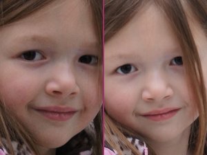 Right: image captured at ISO 3200 with multi frame noise reduction. Click to see an enlargement. |