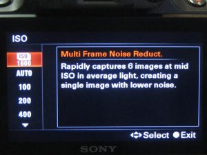 | Multi frame noise reduction is the A55’s “stealth” feature. For some reason, it hasn’t been widely promoted by Sony. In fact, I didn’t know about multi frame noise reduction until one of the Sony reps explained its use to me at a recent trade show.